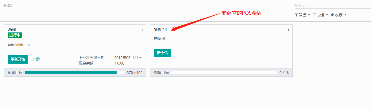 在POS模块中新建POS会话。